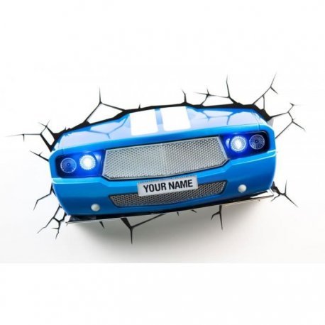 - Une Mustang CAR à la Steve Mc Queen, et des phares spéciaux qui s'illuminent aussi en bleu ! En plus ? Personnalise ta lampe led 3D DECO avec ton nom sur la plaque d'immatriculation.