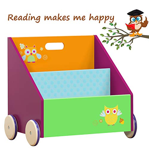 ^^*Labebe Etagère Bois, Etagère Rangement pour Enfant en 1 an Plus sur Le Design avec Hibou Vert, Bibliothèque Enfant avec des Roués 2-en-1 Utilisé comme Walker, Etagère Enfant/Petite Etagère Chambre prêt à acheter.