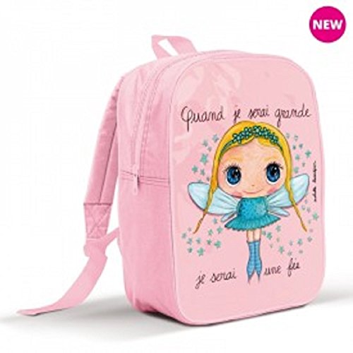 La description : Label'Tour – Petit sac à dos enfant « Quand je serai grande, je serai une fée » – couleur rose – Dimensions : 24 x 18,5 x 8 cm Matièe : Nylon et PVC imprimé Bretelles réglables et porte-nom au dos du sac