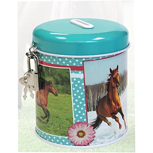 - Tirelire métal cheval,, avec 1 cadenas et 2 cles, Dimensions: H 10 cm diametre:8.5 cm